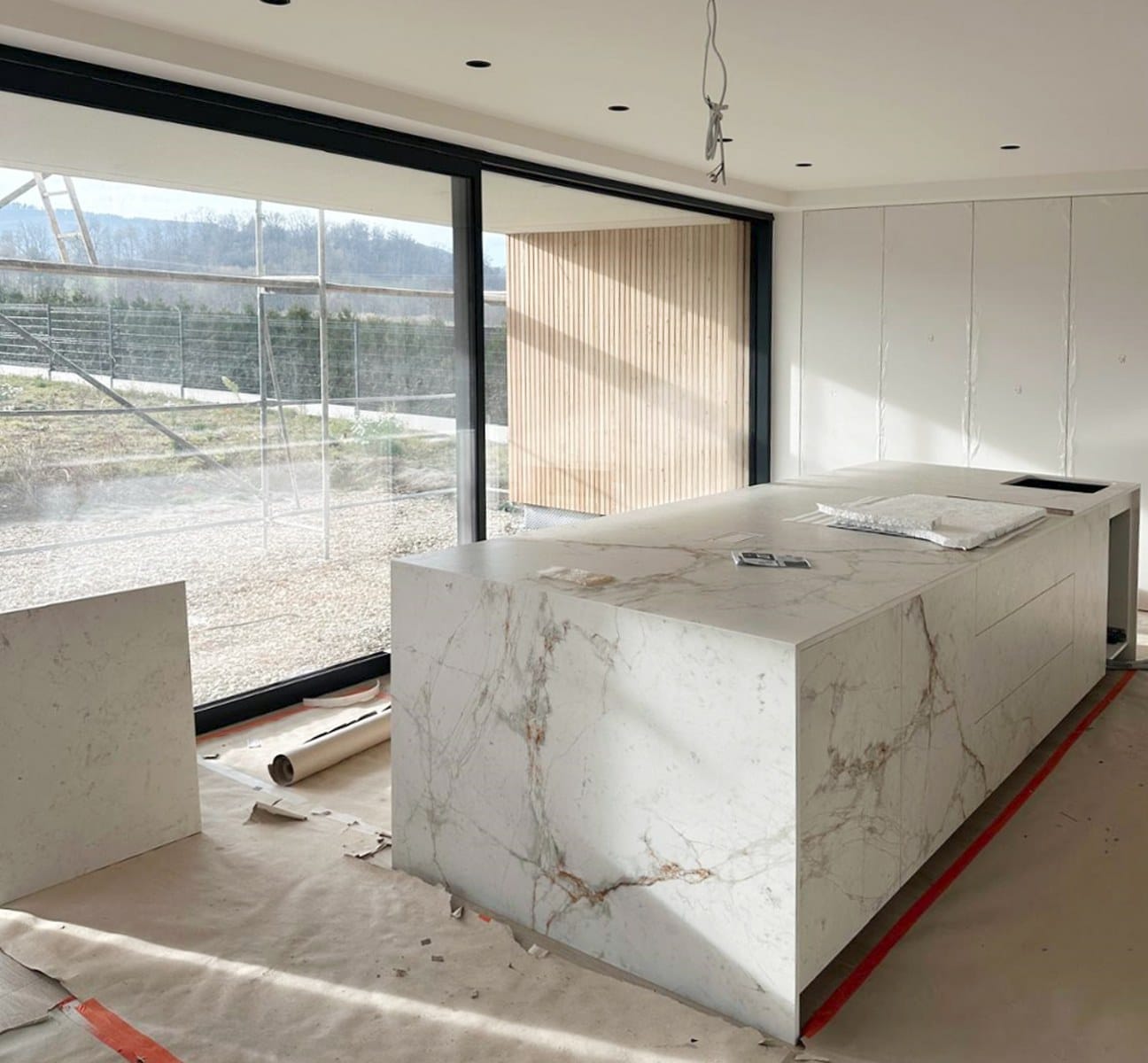 Życzeniem inwestora było również stworzenie dużej i wysokiej przestrzenni dziennej. Jednym z zastanych problemów było sąsiedztwo wysokiego i niezbyt atrakcyjnego wizualnie domu, usytuowanego przy najatrakcyjniejszej, południowo-zachodniej granicy działki. Architekci zaprojektowali dom w formie dwóch równoległych „stodół”, połączony ze sobą komunikacją.