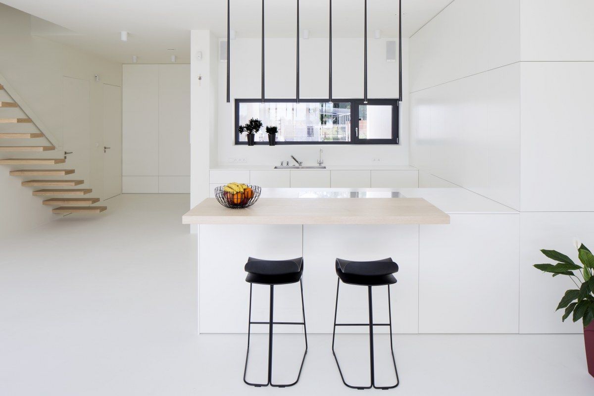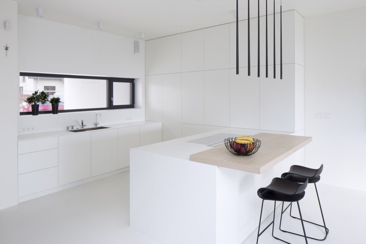 "Architektom udało się uzyskać zwartość i prostotę wyrazu zewnętrza budynku, jednocześnie tworząc ciekawą grę wewnętrznych wycięć. Wnętrza zaprojektowano w duchu minimalistycznym. Ograniczona paleta barw, funkcjonale rozwiązania oraz starannie dobrane dodatki sprawiły, że dom uzyskał uporządkowany i stonowany klimat. Całość dopełnia zieleń – zarówno ta ogrodowa, jak i usytuowane w centrum patia drzewo. Daje ona możliwość ciągłego kontaktu z przyrodą i zmiennymi warunkami atmosferycznymi." - pisze portal sztuka-architektury.pl