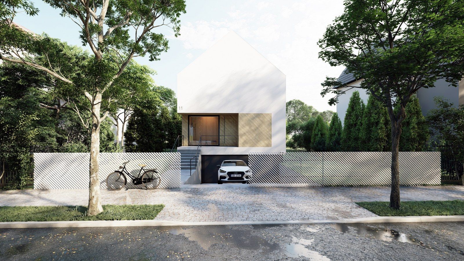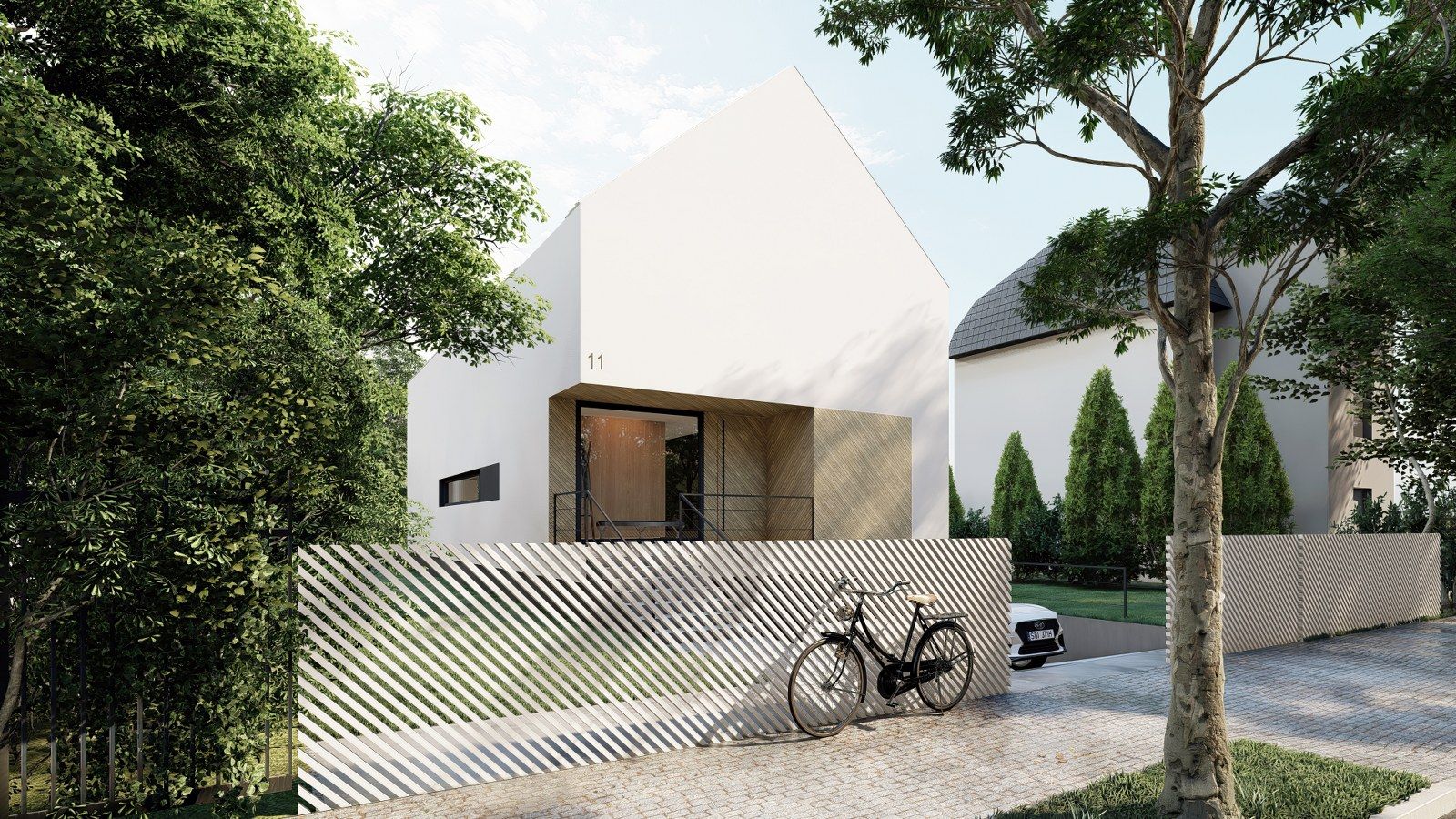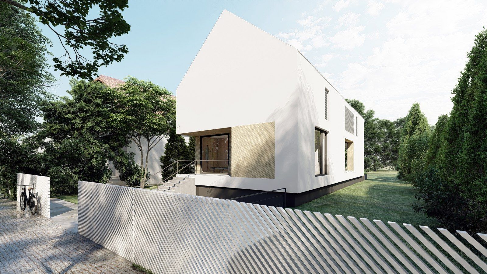 Miejska willa projektu INOSTUDIO architekci usytuowana jest na wąskiej działce w willowej dzielnicy Wrocławia. Inwestorom zależało na stworzeniu domu o minimalistycznej formie, który naturalnie wpisze się w okolicę. Ważnym aspektem dla przyszłych mieszkańców było także doświetlenie przestrzeni dziennej domu naturalnym światłem słonecznym. Projektanci stworzyli ciekawą, minimalistyczną białą formę przekrytą stromym dachem, która efektownie uzupełnia krajobraz, wpisując się w zastany kontekst.
