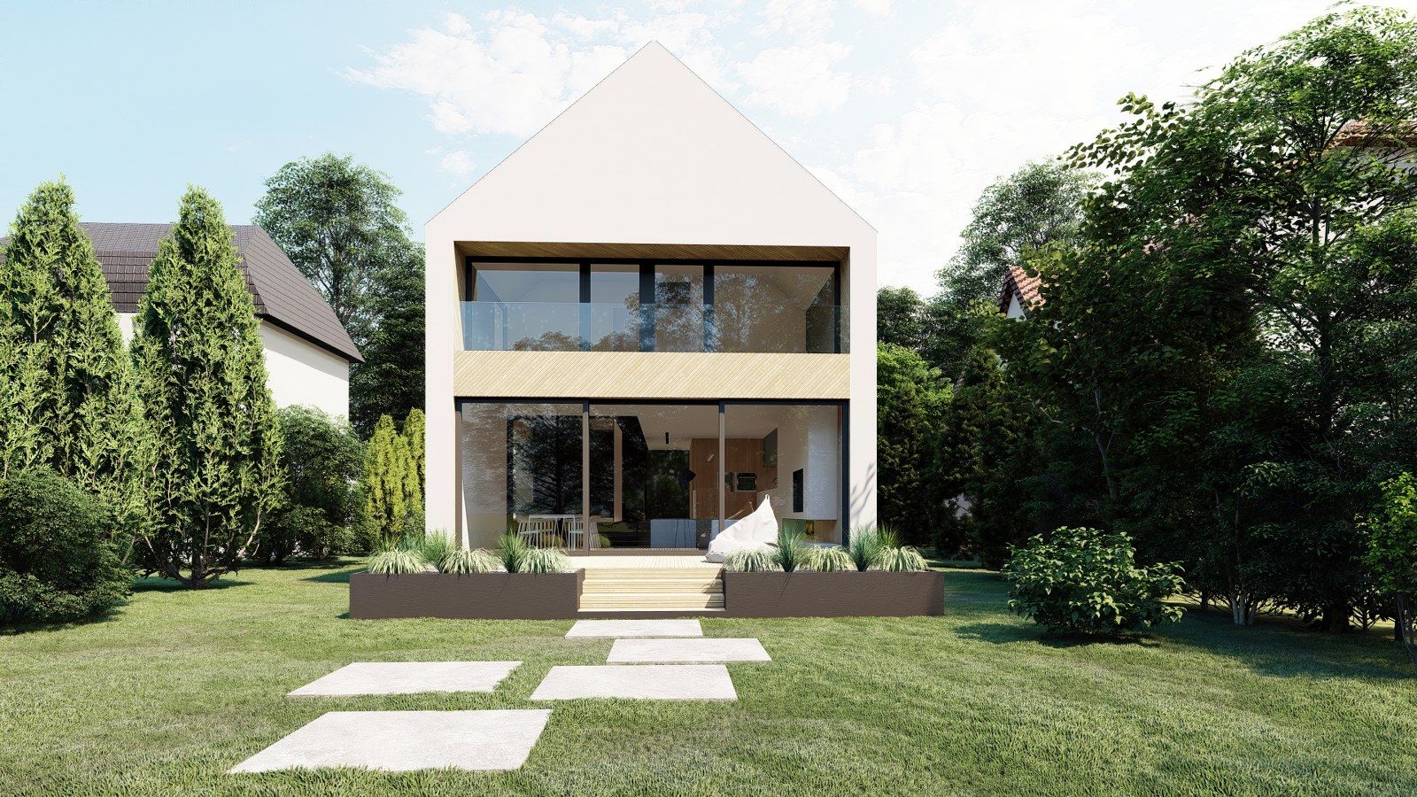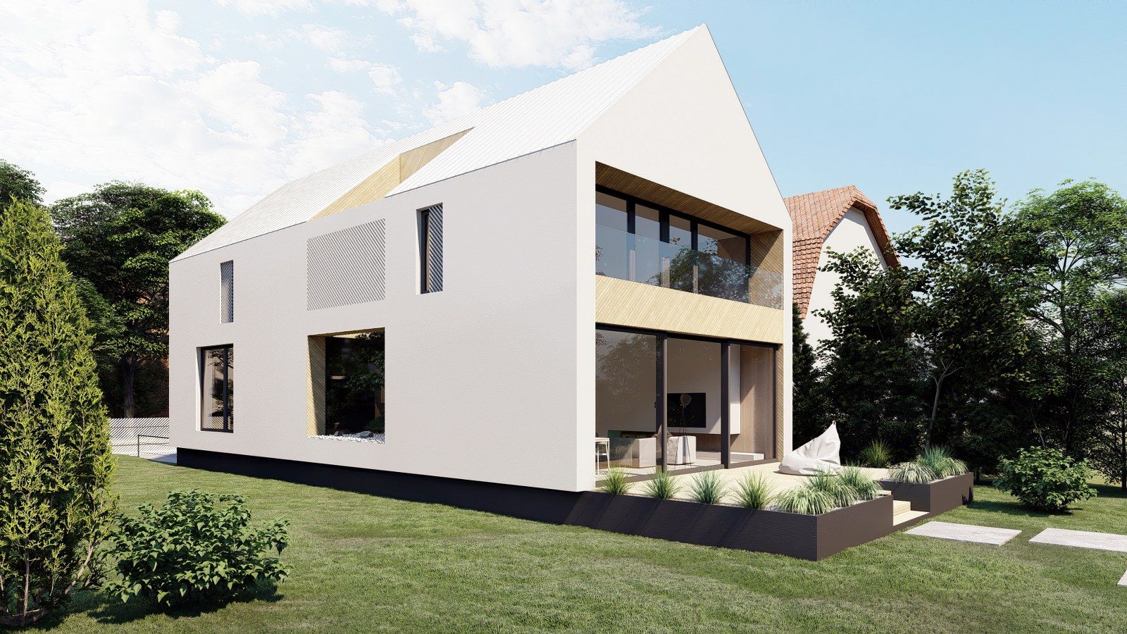 Na działce znajduje się dom z płaskim dachem z lat 80-tych ubiegłego wieku, usytuowany pomiędzy pięknymi willami z początku XX wieku. Architekci wspólnie z Inwestorami postanowili nawiązać do okolicznej zabudowy i stworzyli dom przekryty stromym dachem. Wyzwaniem dla projektantów było także rozwiązanie problemu doświetlenia pomieszczeń i dostępu naturalnego światła do domu w godzinach popołudniowych. Z jednej strony budynek przesłania wysoka, 15-metrowa willa, z innej wysokie drzewa zasłaniają naturalne światło. Projekt biura INOSTUDIO architekci jest ciekawą odpowiedzią na wytyczne Inwestorów oraz problemy stosunkowo wąskiej działki.