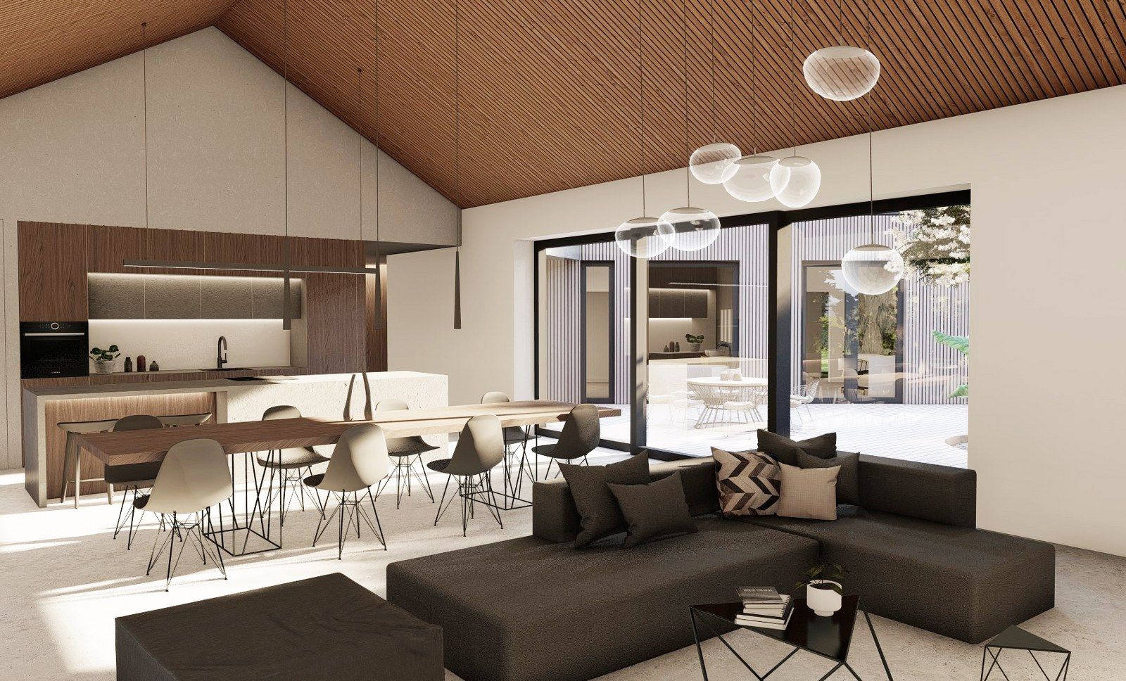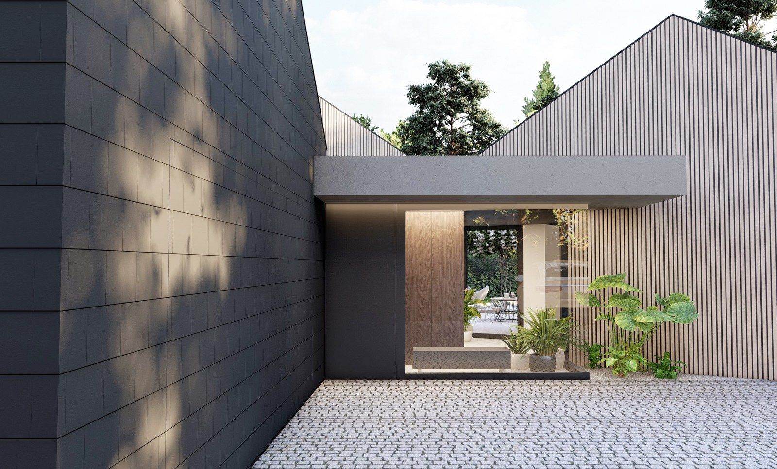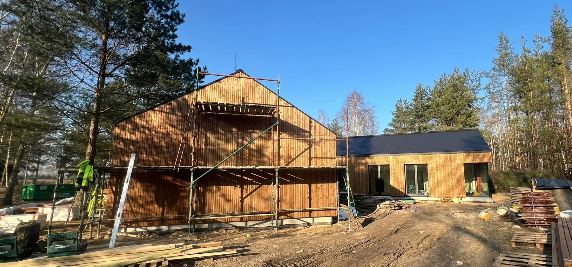 Ten dom powstał z myślą o harmonii z otaczającą naturą. Od początku wiedzieliśmy, że jego największą wartością działki są drzewa – stare, majestatyczne sosny, które nadają miejscu niepowtarzalny klimat. Zamiast je wycinać, dopasowaliśmy projekt do ich układu, tak aby budynek niemal „wtapiał się” w las.
