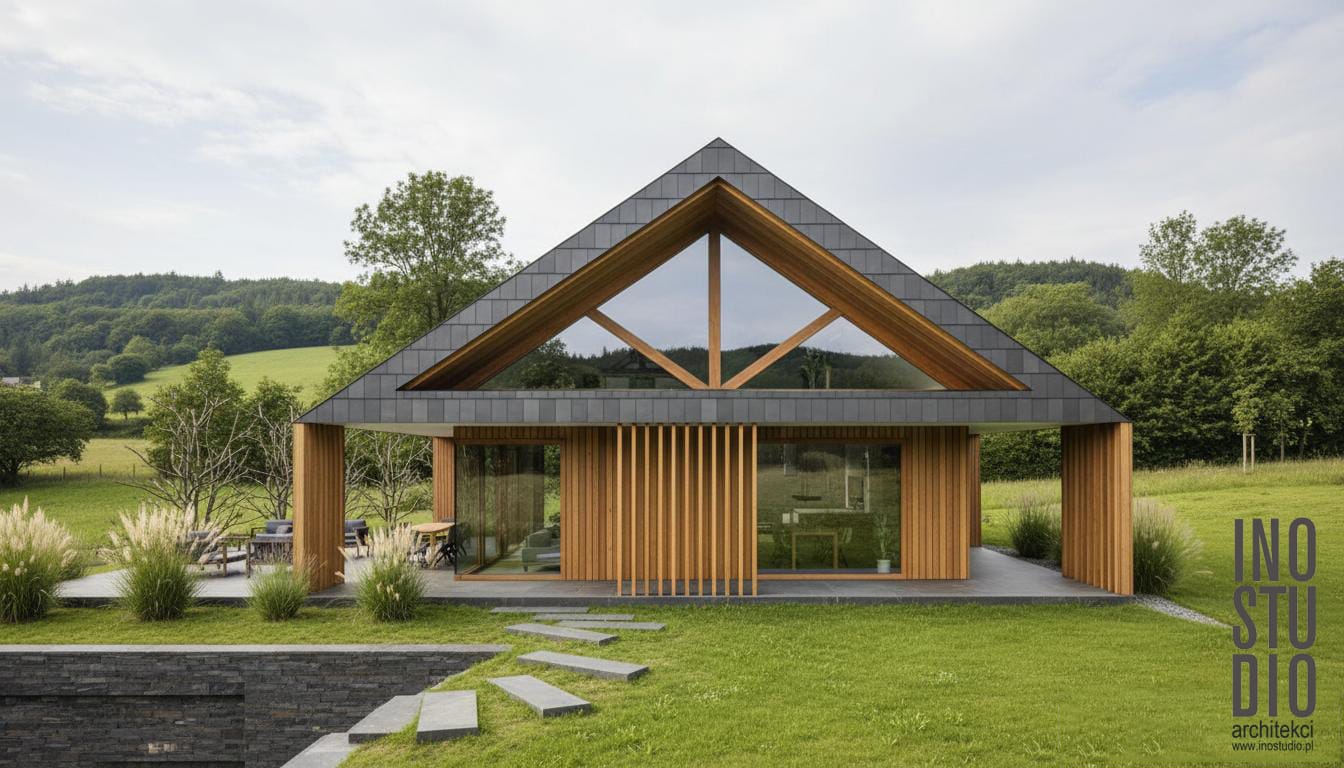 Lubimy projektować w górach — to wymagające, ale zawsze inspirujące lokalizacje. W tym projekcie ponownie mogliśmy zmierzyć się z górskim terenem, tym razem na pięknej działce położonej na zboczu w okolicach Żywca. Miejsce oferuje wyjątkowy widok na panoramę gór, jednak jego wyraźny spadek oraz oczekiwania inwestora stanowiły kluczowe wyzwania projektowe.